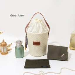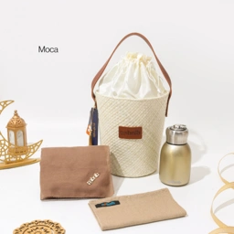 Dengan keranjang anyaman cantik.